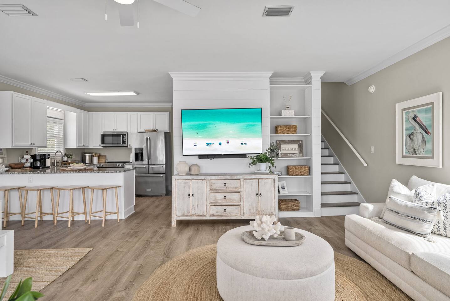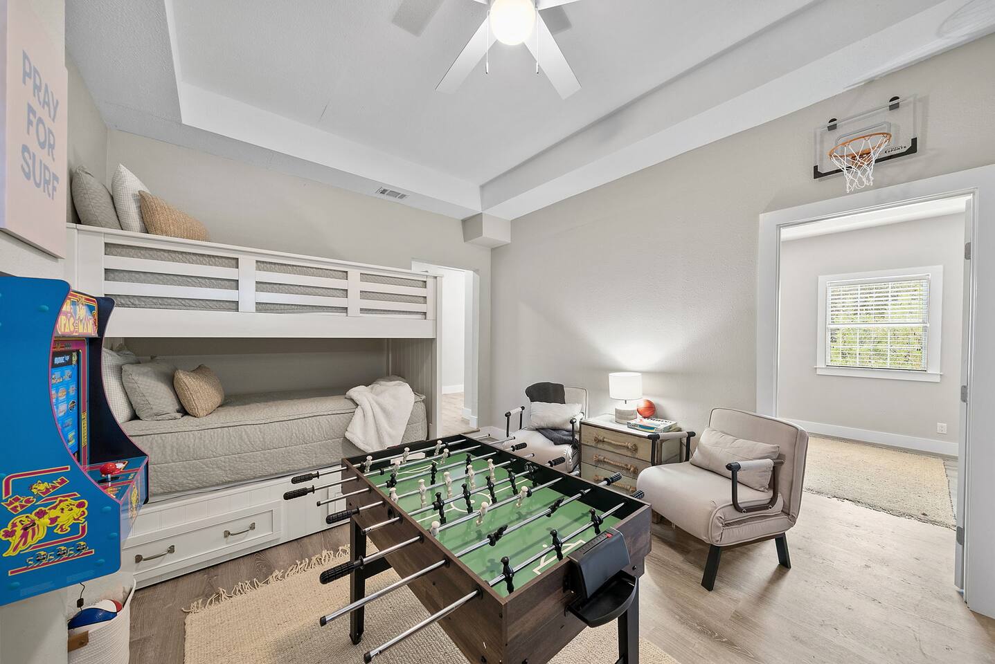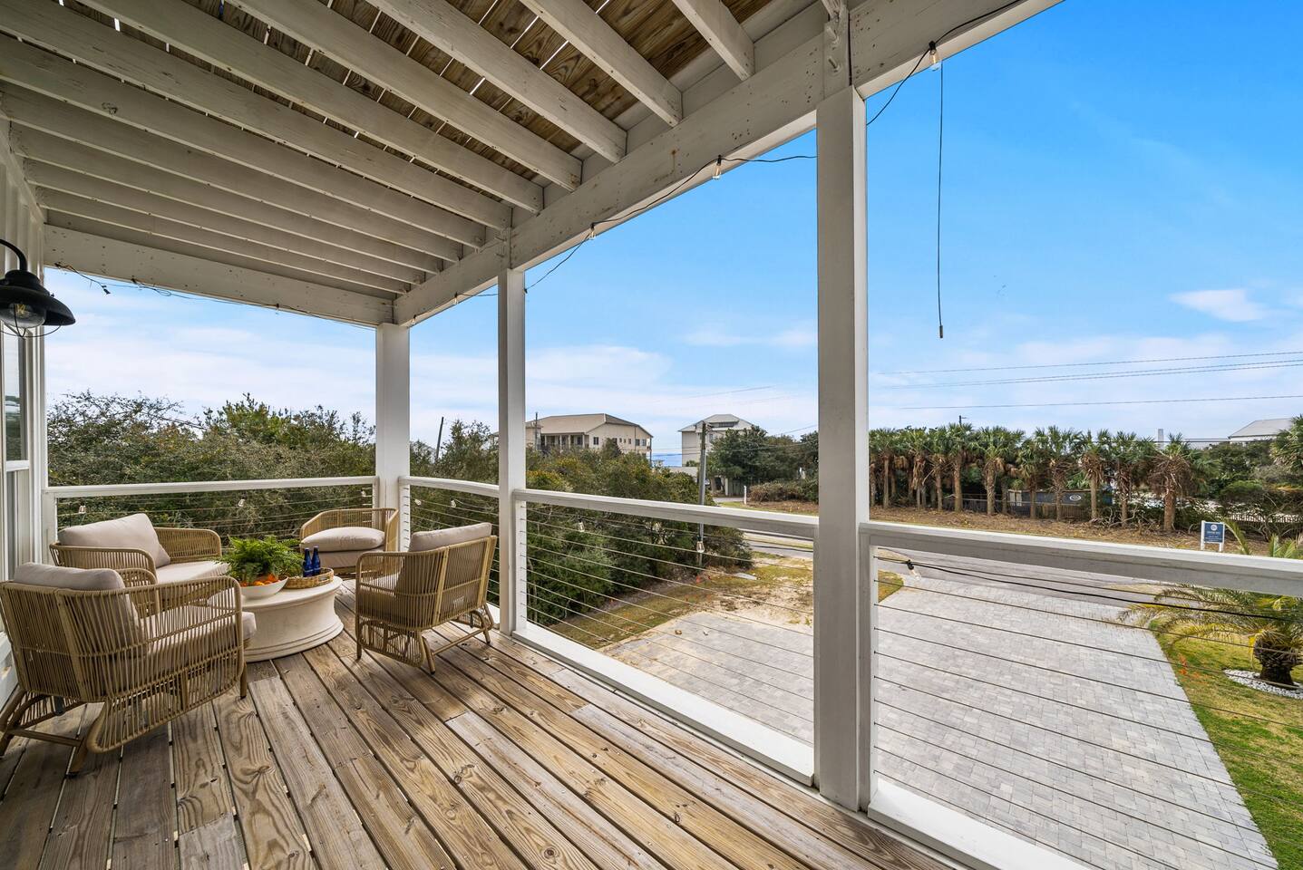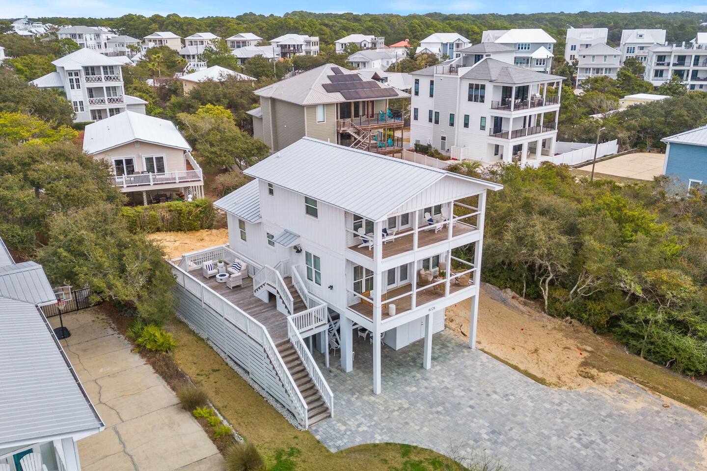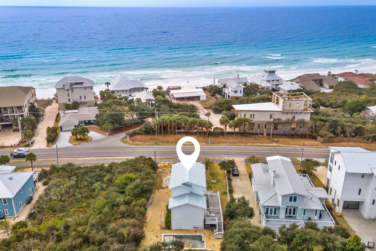🌴Welcome to your perfect getaway, Be Still by the Sea - 30A, by Hummingbird Vacation Rentals—a spacious 5-bedroom, 3-bath coastal retreat designed for relaxed beach living, outdoor gathering, and unforgettable time with family and friends. Located directly along scenic 30A and just a short walk to the beach, this home offers the ideal blend of convenience, comfort, and classic coastal charm. Brand-new custom-built pool for everyday relaxing. *Pool Disclaimer (pool is being built on property estimated completion (4/20/2026).* Pictures in listing are displayed has a conceptual rendering and does not represent a completed or currently available amenity. Professional pictures to be completed on 4/30/2026. Easy walking distance to public beach access at Dune Allen Regional Beach Access. Cruise along the 30A bike path, explore local coastal towns, or spend the day enjoying sugar-white sand beaches just moments away. Grab the whole family and jump on the 6-Seater Golf Cart included with each stay. ✨ The Space Designed with comfort and gathering in mind, the home features open living areas, coastal décor, and multiple expansive porches offering beautiful views and relaxing outdoor seating. Whether enjoying morning coffee, sunset dinners, or evening conversations, the generous porch spaces create the perfect coastal atmosphere. The fully equipped kitchen opens into the main living and dining areas, making it easy to prepare meals while staying connected with your group. Spacious seating areas provide plenty of room for relaxing after a day at the beach. 🛏️ Sleeping Arrangements (Sleeps 15) Comfortable accommodations designed for families and larger groups: 1ST FLOOR: - 2 Bedrooms: Queen (Sleeps 2) - 1 Twin Bunk (Sleeps 2) - Arcade Games: (Pac-Man, XBox, Foosball, Darts) - Bathroom w/ Walk-In Shower - Kitchenette -1st floor has its own access and is not connected to the 2nd floor 2ND FLOOR: - Kitchen/Living/Dining - 2 Bedrooms: Queen (Sleeps 2) - Bunk Beds (Sleeps 5) - Bathroom w/ Tub/Shower - Living Area: Sectional & Big Screen TV - Balcony with Seating and Gulf Views 3RD FLOOR: - Bedroom: 2 Kings (Sleeps 4) - Bathroom w/ Double Vanities & Walk-in Shower - Balcony with Seating and Gulf Views EXTERIOR: - 6 Car Driveway - 2nd and 3rd Floor Balconies - Large Yard -Outdoor Pool (4/20 completion) with Lounge Chairs. **Pool heating available for $75 per day. Please reach out 24 hours prior to check-in so that we can turn on** - Golf Cart (Low Speed Vehicle, "LSV") 6 Seat Rental with blue-tooth speakers included with your stay. 🌅 Outdoor Living Multiple large porches with scenic 30A views Ideal spaces for morning coffee, sunset drinks, and making memories with family and friends. Side patio with outdoor seating, gas fireplace, and gas grill Yard: Outdoor green space, plenty of room to enjoy Spacious parking 📍 Location Highlights Located in the heart of the Gulf Place / Dune Allen area, the home is just a short walk or bike ride to local favorites including Shunk Gulley Oyster Bar, Sunrise Coffee Co., The Perfect Pig, and several shops and restaurants, with additional dining options just minutes away along scenic 30A 📍 Nearby Dining, Coffee & Shops 🐟 Stinky’s Fish Camp – ~1 min A beloved local seafood restaurant known for brunch and fresh daily catches. 🍽️ Shunk Gulley Oyster Bar – ~4 mins Gulf-view seafood, oysters, and sunset dining just a short walk away. 🥓 The Perfect Pig – Gulf Place – ~4 mins Breakfast, brunch, sandwiches, and coastal favorites. 🛍️ Gulf Place Town Center – 4 mins Walk to boutique shopping, local art galleries, restaurants, seasonal events, live music, and family-friendly gathering spaces. ☕ Kith & Kin Coffee – 5 mins Specialty coffee, pastries, and breakfast favorites just a short walk or bike ride away. ☕ Amor Café – 4 mins Espresso drinks, light breakfast options, and casual café seating nearby. ☕ Stinky’s Bait Shack – 1 min Morning coffee, breakfast bites, and relaxed seating close to the home. ☕ Coastal Coffee & Cafe - 2 mins Premium coffee, fresh pastries, and healthy bowls. ⏰ House Notes Check-in: 4 PM CST Check-out: 10 AM CST Primary renter must be 25+ unless accompanied by a parent/guardian