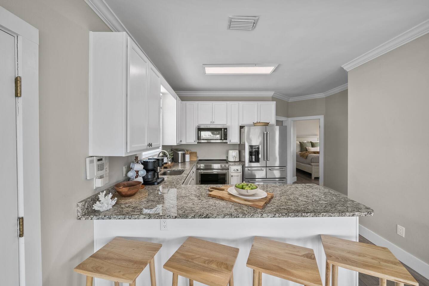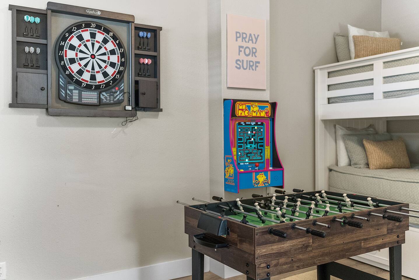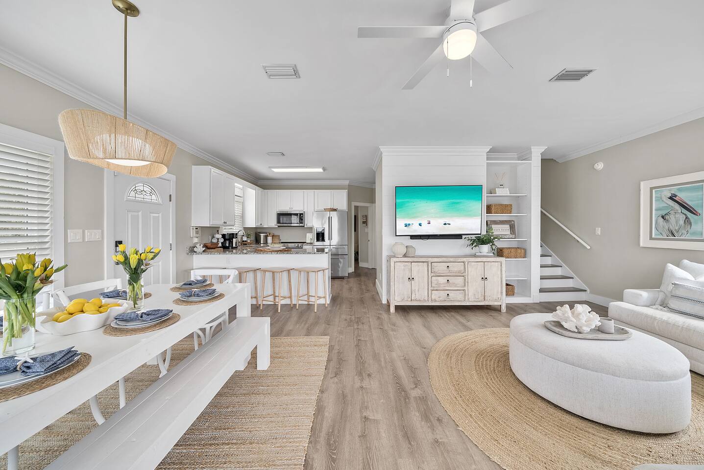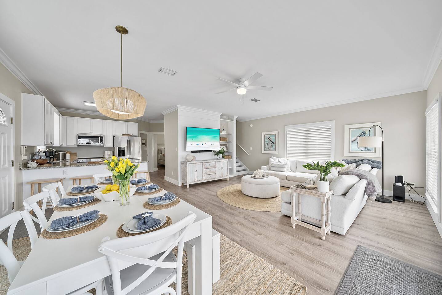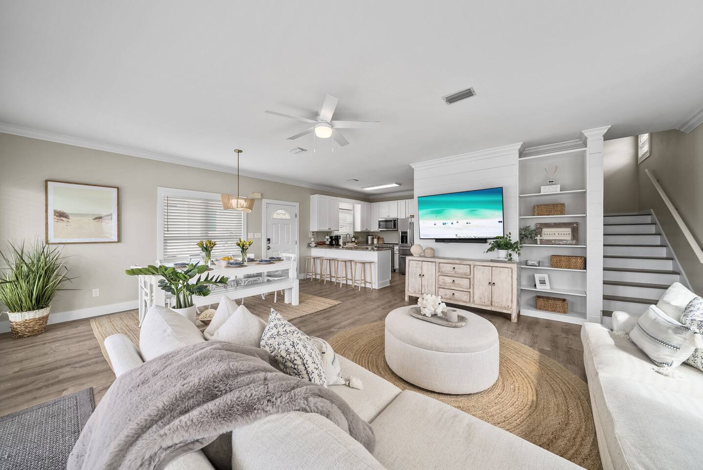 🌴Welcome to your perfect getaway, Be Still by the Sea - 30A, by Hummingbird Vacation Rentals—a spacious 5-bedroom, 3-bath coastal retreat designed for relaxed beach living, outdoor gathering, and unforgettable time with family and friends. Located directly along scenic 30A and just a short walk to the beach, this home offers the ideal blend of convenience, comfort, and classic coastal charm. Brand-new custom-built pool for everyday relaxing. *Pool Disclaimer (pool is being built on property estimated completion (4/20/2026).* Pictures in listing are displayed has a conceptual rendering and does not represent a completed or currently available amenity. Professional pictures to be completed on 4/30/2026. Easy walking distance to public beach access at Dune Allen Regional Beach Access. Cruise along the 30A bike path, explore local coastal towns, or spend the day enjoying sugar-white sand beaches just moments away. Grab the whole family and jump on the 6-Seater Golf Cart included with each stay. ✨ The Space Designed with comfort and gathering in mind, the home features open living areas, coastal décor, and multiple expansive porches offering beautiful views and relaxing outdoor seating. Whether enjoying morning coffee, sunset dinners, or evening conversations, the generous porch spaces create the perfect coastal atmosphere. The fully equipped kitchen opens into the main living and dining areas, making it easy to prepare meals while staying connected with your group. Spacious seating areas provide plenty of room for relaxing after a day at the beach. 🛏️ Sleeping Arrangements (Sleeps 15) Comfortable accommodations designed for families and larger groups: 1ST FLOOR: - 2 Bedrooms: Queen (Sleeps 2) - 1 Twin Bunk (Sleeps 2) - Arcade Games: (Pac-Man, XBox, Foosball, Darts) - Bathroom w/ Walk-In Shower - Kitchenette -1st floor has its own access and is not connected to the 2nd floor 2ND FLOOR: - Kitchen/Living/Dining - 2 Bedrooms: Queen (Sleeps 2) - Bunk Beds (Sleeps 5) - Bathroom w/ Tub/Shower - Living Area: Sectional & Big Screen TV - Balcony with Seating and Gulf Views 3RD FLOOR: - Bedroom: 2 Kings (Sleeps 4) - Bathroom w/ Double Vanities & Walk-in Shower - Balcony with Seating and Gulf Views EXTERIOR: - 6 Car Driveway - 2nd and 3rd Floor Balconies - Large Yard -Outdoor Pool (4/20 completion) with Lounge Chairs. **Pool heating available for $75 per day. Please reach out 24 hours prior to check-in so that we can turn on** - Golf Cart (Low Speed Vehicle, "LSV") 6 Seat Rental with blue-tooth speakers included with your stay. 🌅 Outdoor Living Multiple large porches with scenic 30A views Ideal spaces for morning coffee, sunset drinks, and making memories with family and friends. Side patio with outdoor seating, gas fireplace, and gas grill Yard: Outdoor green space, plenty of room to enjoy Spacious parking 📍 Location Highlights Located in the heart of the Gulf Place / Dune Allen area, the home is just a short walk or bike ride to local favorites including Shunk Gulley Oyster Bar, Sunrise Coffee Co., The Perfect Pig, and several shops and restaurants, with additional dining options just minutes away along scenic 30A 📍 Nearby Dining, Coffee & Shops 🐟 Stinky’s Fish Camp – ~1 min A beloved local seafood restaurant known for brunch and fresh daily catches. 🍽️ Shunk Gulley Oyster Bar – ~4 mins Gulf-view seafood, oysters, and sunset dining just a short walk away. 🥓 The Perfect Pig – Gulf Place – ~4 mins Breakfast, brunch, sandwiches, and coastal favorites. 🛍️ Gulf Place Town Center – 4 mins Walk to boutique shopping, local art galleries, restaurants, seasonal events, live music, and family-friendly gathering spaces. ☕ Kith & Kin Coffee – 5 mins Specialty coffee, pastries, and breakfast favorites just a short walk or bike ride away. ☕ Amor Café – 4 mins Espresso drinks, light breakfast options, and casual café seating nearby. ☕ Stinky’s Bait Shack – 1 min Morning coffee, breakfast bites, and relaxed seating close to the home. ☕ Coastal Coffee & Cafe - 2 mins Premium coffee, fresh pastries, and healthy bowls. ⏰ House Notes Check-in: 4 PM CST Check-out: 10 AM CST Primary renter must be 25+ unless accompanied by a parent/guardian