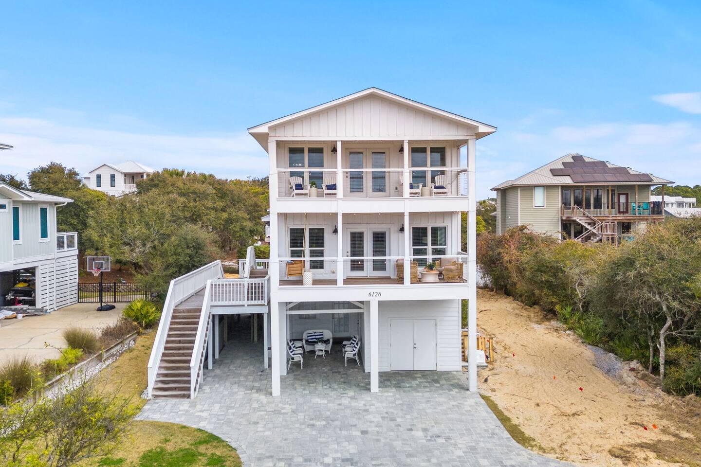 🏖️Beach Access - Guests have full access to Dune Allen Regional Beach Access which is 1 minute from the house. Guests also have access to Dune Allen Beach which is 2 minutes from the house. Both beaches have bathrooms and showers. Beach chairs, boogie boards, baby sunshade, and wagon for making beach days easy and enjoyable are included. 6-Seater golf cart included with each stay. Guests will need to sign waiver to access cart key.