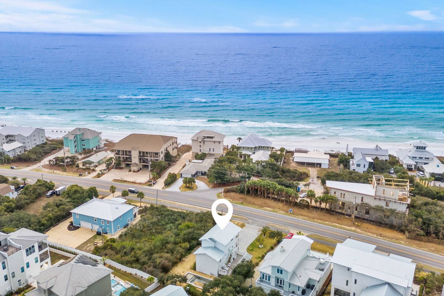 Spacious coastal retreat with Gulf views, just steps from the beach. This bright, open-concept home sleeps up to 15 and is perfect for families and groups. Enjoy multiple balconies, a fully equipped kitchen, and relaxing indoor-outdoor living. Includes a 6-seater golf cart for easy beach and 30A access. Close to dining and shopping. Brand-new custom-built pool. The perfect blend of comfort, location, and unforgettable beach memories. Pool under construction, est. completion 4/20/2026.